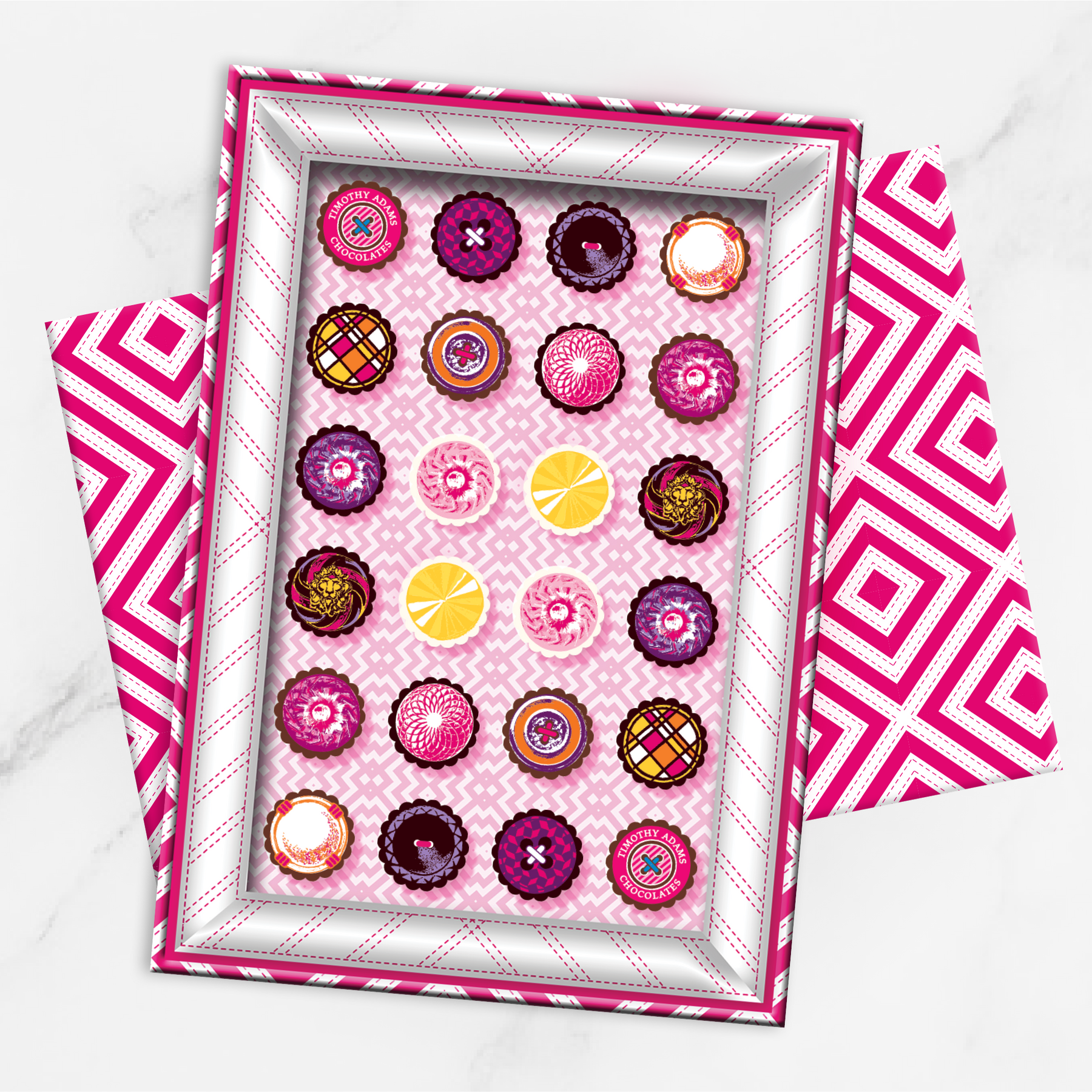 Our most luxurious presentation of creams and caramels—twenty-four truffles, each an exercise in balance and refinement. Valrhona chocolate envelopes fillings like Burnt Caramel, Mocha Cream, and Vanilla Citrus, each one handmade in small batches for flawless consistency. Encased in our custom-designed gift box, finished with grosgrain ribbon and metal buckle, layered over a 9-ply candy pad, and shipped with a cooling element to guarantee ultimate freshness.
