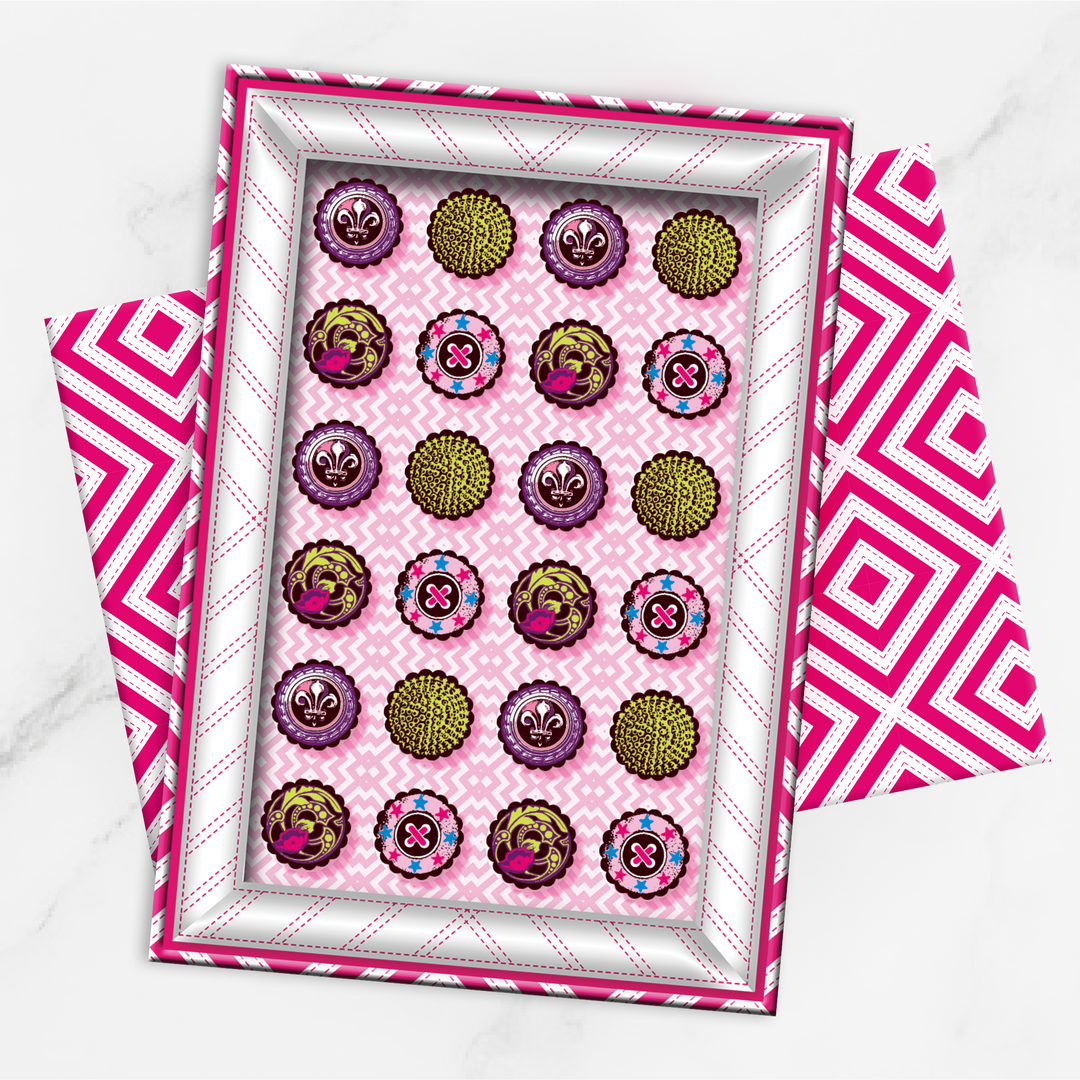 A refined flight of 24 handcrafted truffles inspired by the world of spirits. Featuring infusions like absinthe, bourbon, cognac, and nocino, this collection delivers warmth, depth, and complexity — with each flavor elegantly layered in rich chocolate.
